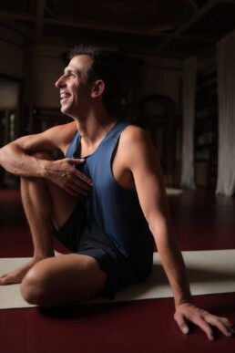 Son intérêt pour le Pilates est né à la suite de différentes blessures liées notamment à son hyperlaxité, à une recherche d’amélioration de sa posture et pour contrer les maux liés au travail debout toute la journée. Le travail en profondeur et les effets d’une respiration mieux contrôlée ont été pour lui une vraie révélation ; il a ainsi pu améliorer ses performances dans les autres sports qu’il pratique.